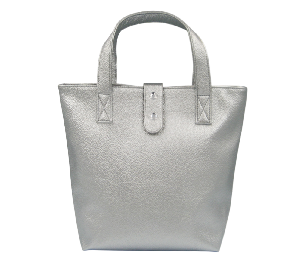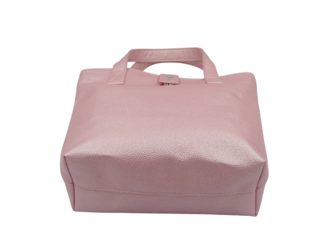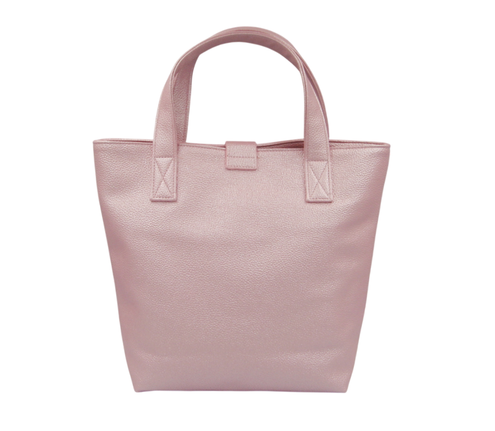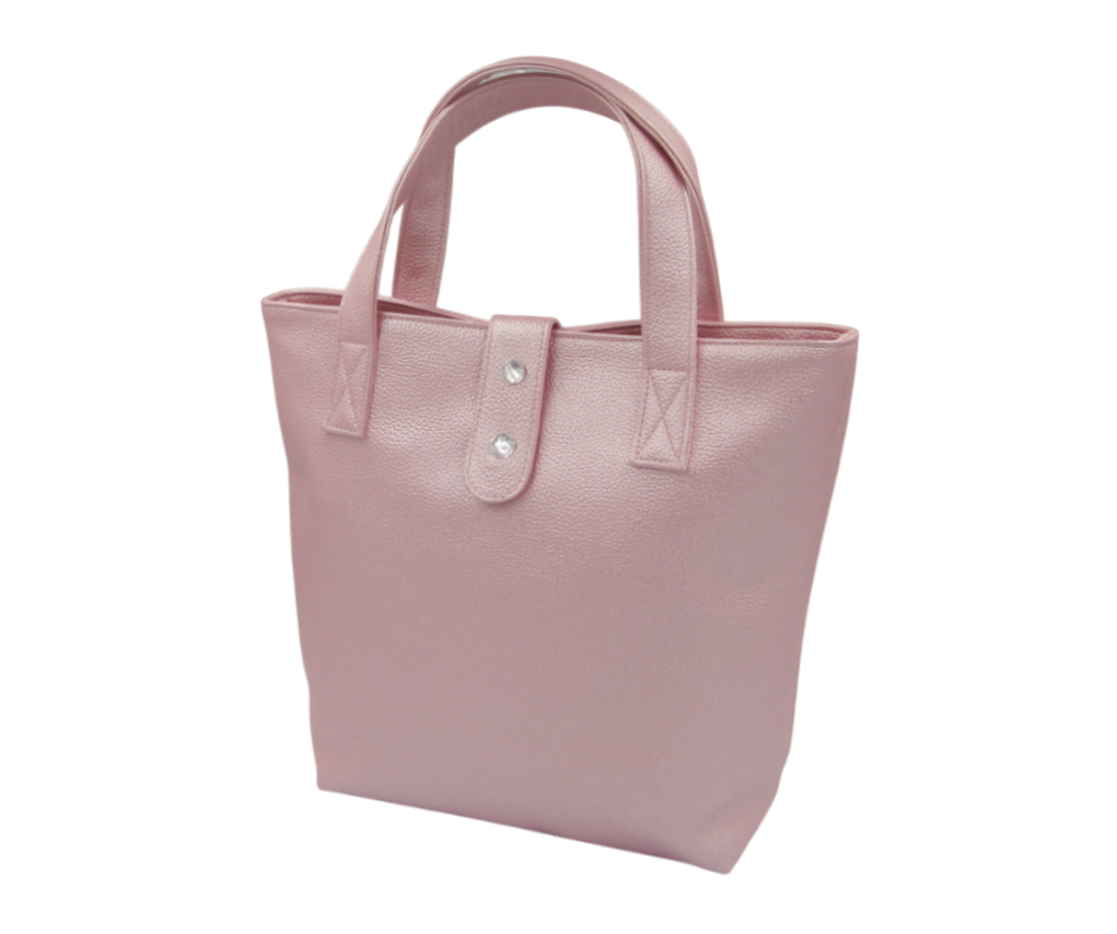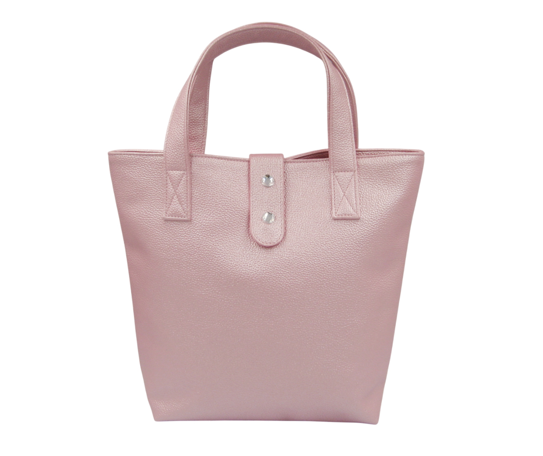 袋口有耳帶 +磁釦閉合 ,耳帶上面有縫2 個壓克力鑽裝飾